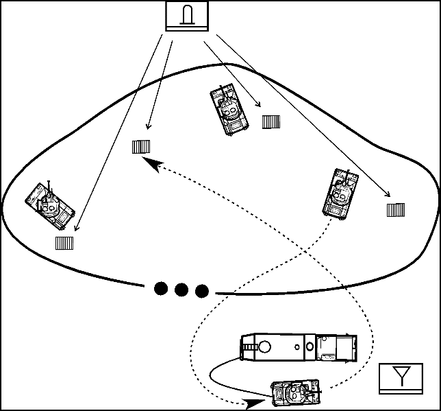 Because security of CSS elements is critical to the success of the company team and task force missions, the company team and task force combat trains and the task force field trains must all develop plans for continuous security operations. Where feasible, they may plan and execute a perimeter defense. The trains, however, may lack the personnel and combat power to conduct a major security effort. In such situations, they must plan and implement passive security measures to provide protection from enemy forces. |